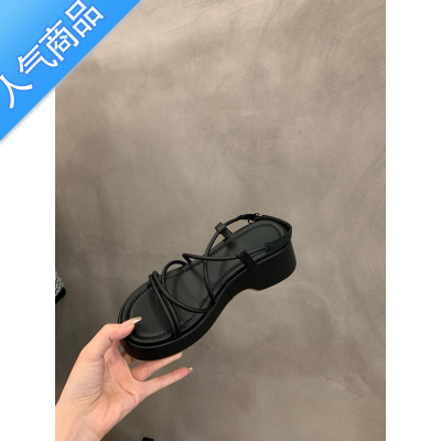 SUNTEK松糕小个子厚底休闲凉鞋女鞋子2023年新款夏季复古时尚绑带罗马鞋