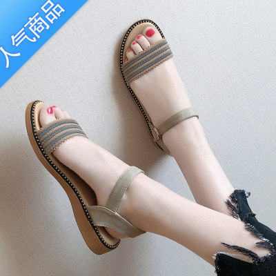 SUNTEK2023夏新款仙女风时尚百搭女凉鞋低跟防滑网红学生女鞋平底妈妈鞋