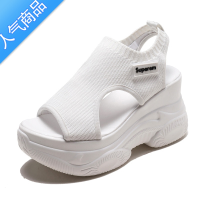 SUNTEK凉鞋女仙女风2023年夏季新款时尚百搭厚底坡跟松糕罗马女鞋ins潮