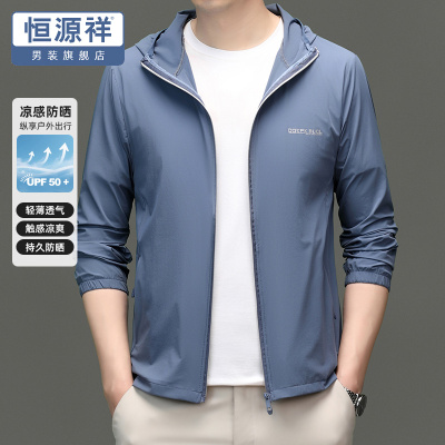恒源祥遮阳防紫外线衣夏季男士户外运动骑行钓鱼连帽薄款防晒服男