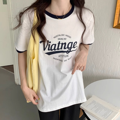 棉质 韩版夏季宽松短袖T恤女学生大码上衣女士打底衫女装