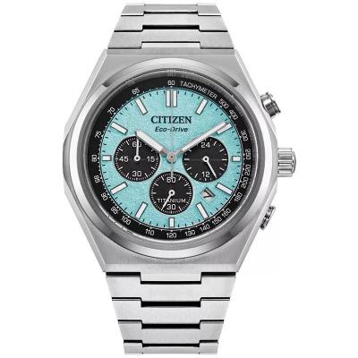 西铁城(CITIZEN)光动能钛合金男士计时码表蓝盘防水商务休闲手表