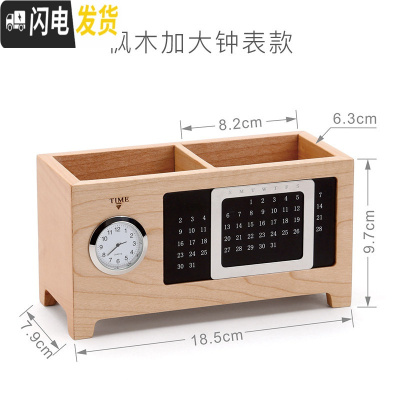 三维工匠木质万年历笔筒创意时尚可爱办公用品北欧实木多功能学生文具桌面收纳盒摆件木办公室简约复古中国风笔桶 枫木加大钟表款