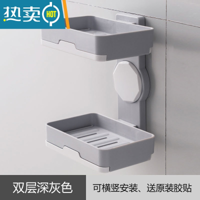敬平免打孔创意肥皂盒壁挂式香皂盒双层皂盒带沥水双格免钉肥皂架 双层深灰色[横竖两用] (送原装备用胶)