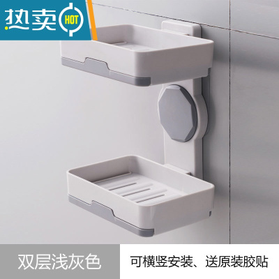 敬平免打孔创意肥皂盒壁挂式香皂盒双层皂盒带沥水双格免钉肥皂架 双层浅灰色[横竖两用] (送原装备用胶)