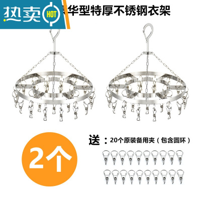 敬平不锈钢衣架多夹子晒袜子晾内衣家用圆形挂钩防风婴儿晾衣盘多功能 2个装 圆形25夹[送20个备用夹] 1个衣夹
