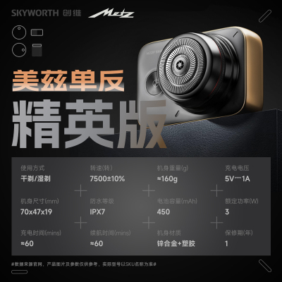 METZ CLASSIC双刀头旋转式电动剃须刀金卡MZJK021流光银色全身水洗长效续航45分钟以上