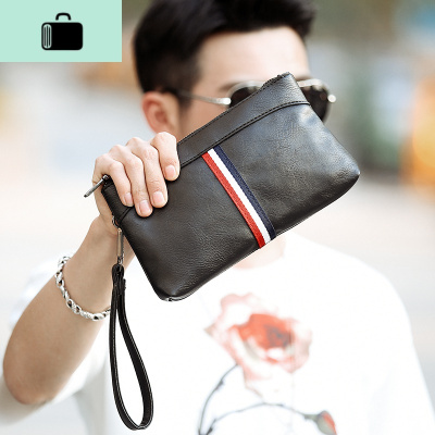 韩版新款男士手拿包 潮流撞色男女手腕包 休闲出行零钱手拿包NEW LAKE 黑色