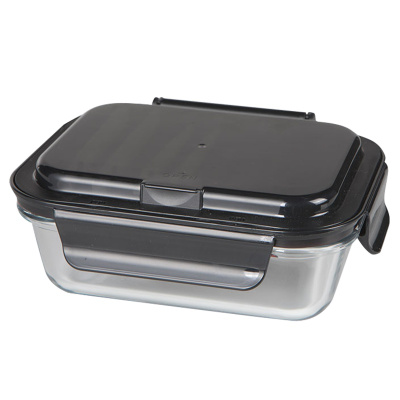 苏宁极物 便携含餐具高硼硅玻璃办公室保鲜盒玻璃饭盒便当盒长方形保鲜碗微波炉烤箱用