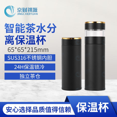 京财祺源 便携智能茶水分离保温杯316不锈钢泡茶杯 商务黑 JCY-A726S-BWB01