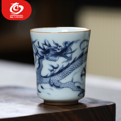 MULTIPOTENT主人杯功夫茶具仿古青花陶瓷品茗杯茶杯青花海浪龙凝香杯