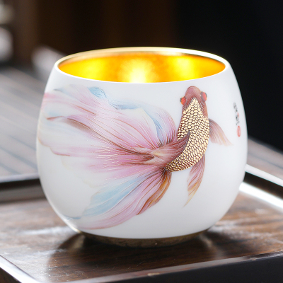 MULTIPOTENT功夫茶杯主人杯冰凝玉悠然自得鎏金款黄旭东大师作品伴手礼盒