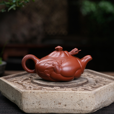 MULTIPOTENT宜兴紫砂壶老紫泥茶壶国家工艺美术师陈浩堆龙石瓢320ml