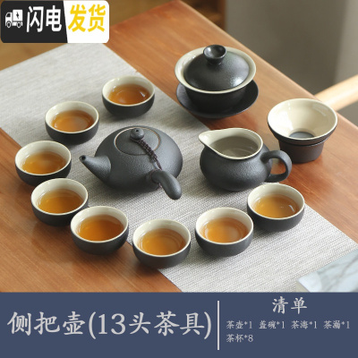三维工匠整套茶具套装家用陶瓷黑陶功夫茶具茶壶茶杯乌金石小茶盘茶台茶托 侧把13头茶具(单茶具)