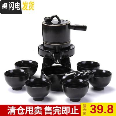 三维工匠茶具家用懒人自动茶杯茶壶等陶瓷泡茶器功夫茶具套装不产 石磨茶具X螺纹黑