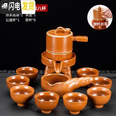 三维工匠茶具家用懒人自动茶杯茶壶等陶瓷泡茶器功夫茶具套装不产 石磨茶具X螺纹棕