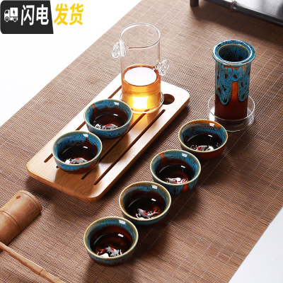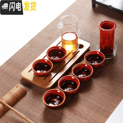 三维工匠功夫茶具套装陶瓷盖碗茶杯茶壶茶海整套茶具手绘青瓷家用 大号双耳茶具-窑变红