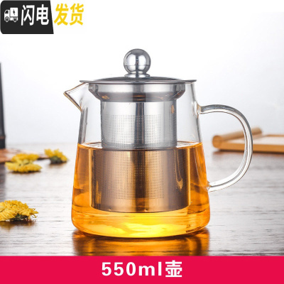 三维工匠可高温玻璃茶壶加厚过滤泡茶壶家用小号功夫煮茶壶茶具套装 550直身钢漏壶