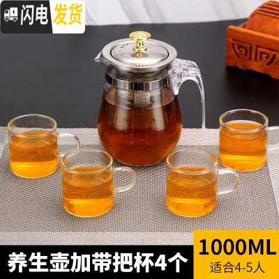 三维工匠飘逸杯泡茶壶便携玻璃水壶全拆洗过滤家用茶具冲茶器办公室沏茶杯 1000单壶+4个茶杯