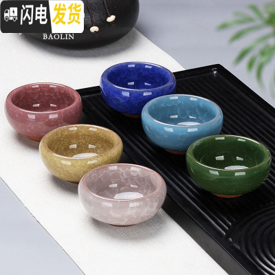 三维工匠6只装冰裂功夫小茶杯陶瓷茶盏茶碗家用单个紫砂品茗杯青花瓷泡茶 茶杯冰裂组-六色杯-6个装