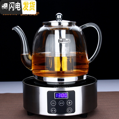 三维工匠加厚可高温煮茶壶 玻璃茶壶 耐热不锈钢网 黑茶泡茶壶 电陶炉套装 04款1800+触屏银色电陶炉送4杯茶具