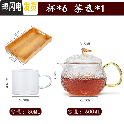 三维工匠玻璃茶壶套装单壶家用日式锤纹功夫茶具可高温加厚过滤泡茶壶 CB46+茶盘+Q14茶杯6个