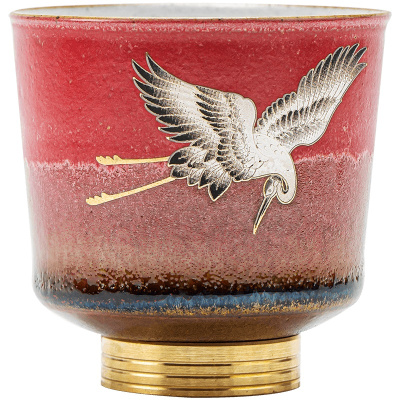 領藝 优选茶杯主人杯陶瓷品茗杯小茶杯中式茶礼功夫茶具 石红瑞鹤宽宏铜底杯礼盒装