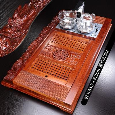 家柏饰(CORATED)花梨盘实台家用浮茶船整块茶托大号茶室遥控电热炉
