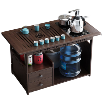晋舰 移动茶台家用阳台竹木小茶桌烧水壶一体简约现代功夫茶几 全自动+黑陶茶具