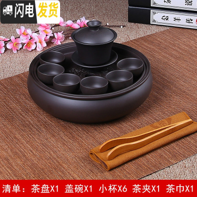 三维工匠紫砂功夫茶具套装现代家用小套简约潮汕陶瓷茶盘茶壶茶杯泡茶套装 9英寸纯黑色茶具套装6小杯盖碗