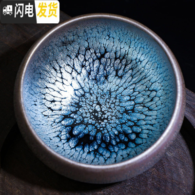 三维工匠 建盏茶杯纯手工油滴鹧鸪斑铁胎茶盏功夫茶具主人杯品茗杯 束口(8.2*4.7)