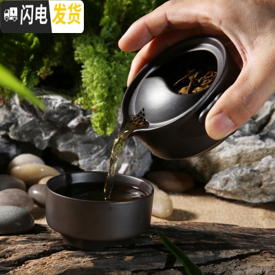 三维工匠茶具套装一壶一杯紫砂快客杯1人简约功夫茶具茶杯陶瓷家用泡茶壶 黑色