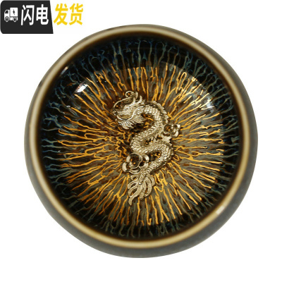 三维工匠金丝天目釉建盏茶杯兔毫盏镶银主人杯窑变单杯十二生肖银杯 禅定杯金丝天目(祥龙)