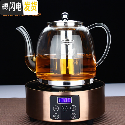 三维工匠加厚可高温煮茶壶 玻璃茶壶 耐热不锈钢网 黑茶泡茶壶 电陶炉套装 12款1800+触屏铜色电陶炉送4杯茶具