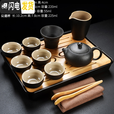 三维工匠 黑陶瓷功夫茶具套装家用简约乌金石干泡小茶盘日式茶壶茶杯 06黑陶宝石壶18头套装