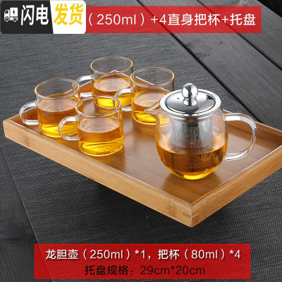 三维工匠加厚耐热玻璃茶壶功夫红茶茶具不锈钢过滤泡茶杯冲茶器迷你泡茶壶 加厚款-龙胆茶壶[250]+4个美直杯+托盘