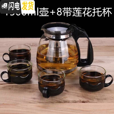 三维工匠开水直冲花茶壶耐热玻璃家用餐厅茶杯茶具不锈钢过滤大容量冲茶器 1500茶壶+带8莲花托杯套装