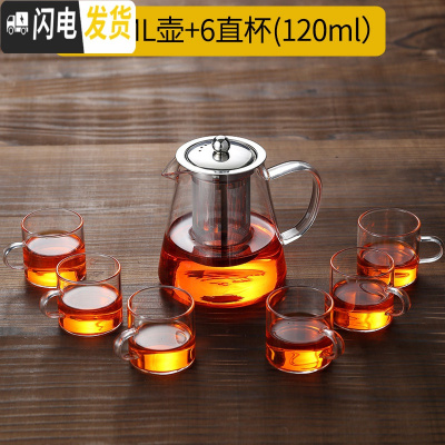 三维工匠玻璃泡茶壶煮茶器加厚过滤套装可高温家用烧水单壶红茶茶具不锈钢 950壶+透明杯6只120