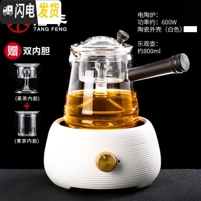 三维工匠玻璃煮茶壶电陶炉煮茶器蒸汽蒸茶器自动蒸茶壶套装家用烧煮茶炉 宛尔陶瓷电陶炉(白色)+乐观煮茶壶¥248茶具