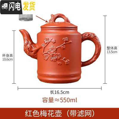 三维工匠宜兴紫砂壶大容量过滤泡茶水壶花茶单壶套装陶瓷家用茶碗茶具套装 红色梅花壶(赠滤网)