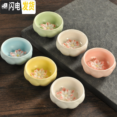 三维工匠陶瓷茶杯套装家用大小号主人杯功夫茶具简约茶碗个人品茗杯子建盏 多彩莲花杯小号(6色)