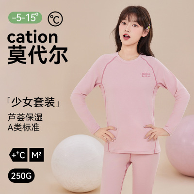 A类莫代尔棉少女保暖内衣女学生薄款10A芦荟养护秋衣秋裤套装