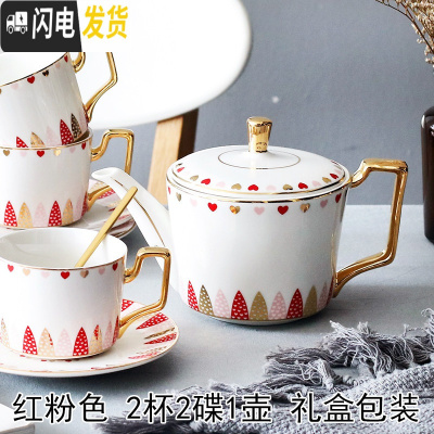 三维工匠ins英式花茶下午茶陶瓷茶具套装创意家用欧式整套咖啡具咖啡杯碟 红粉色2杯2碟2勺1壶礼盒包装 10件