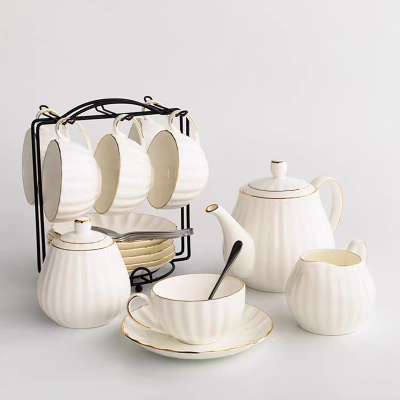 三维工匠ins英式花茶下午茶陶瓷茶具套装创意家用欧式整套咖啡具咖啡杯碟 黑灰色4杯4勺1壶1盘彩盒装 10件