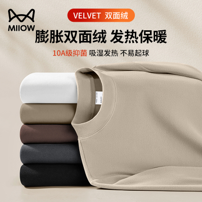 猫人男女士双层芃芃绒加厚恒温保暖内衣套装2025年新款抑菌圆领棉毛衫400g重