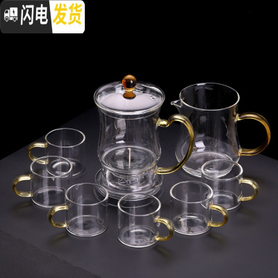 三维工匠玻璃茶具套装功夫茶具整套家用客厅耐热简约简约懒人全自动泡茶器 功夫茶具套装金色