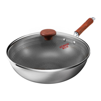 康巴赫炒锅316L不锈钢悦己红木蜂窝防粘锅少油烟平底炒菜锅电磁炉燃气灶通用 32cm