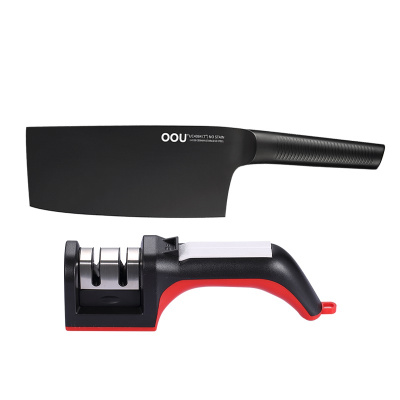 OOU!黑刃菜刀磨刀器两件套 全套厨房刀具磨刀棒刀具菜刀刀具套装不锈钢刀具锋利不生锈