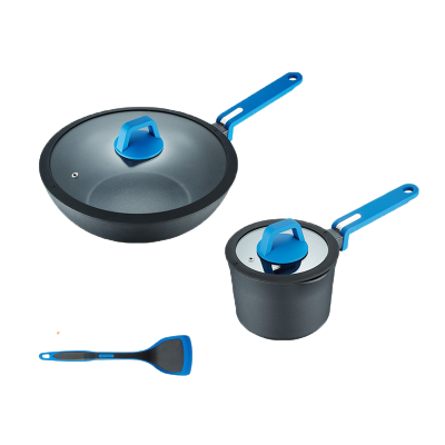 德世朗家居礼品定制蓝鲨不粘锅平底锅家用炒锅燃气灶电磁炉炒菜锅 蓝鲨尊享2件套[炒锅+奶锅]