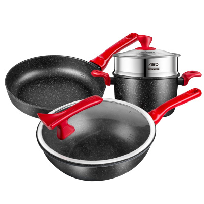 爱仕达麦饭石家用三件套不粘锅晶石套锅炒锅煎锅汤锅配304不锈钢蒸格PL03S3WG